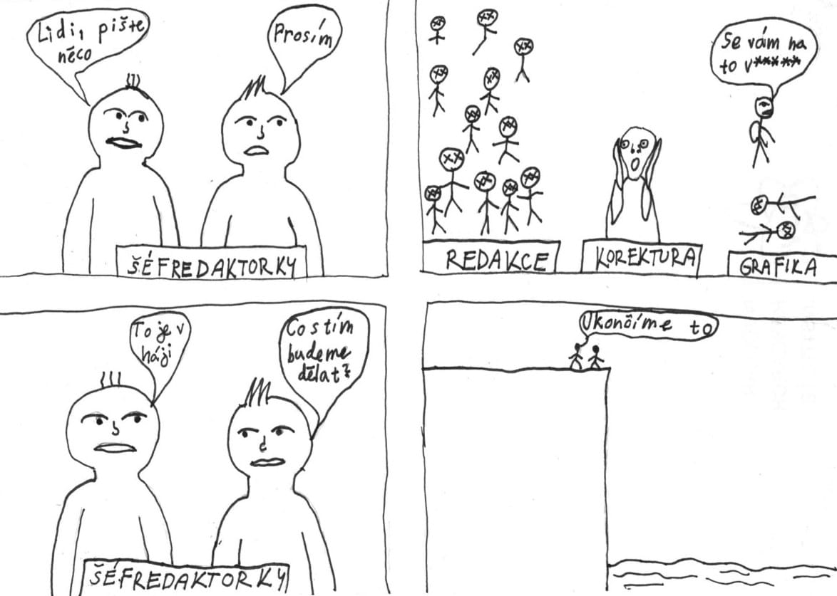 Pomalu ale jistě se tak náš celý tým začal rozpadat. Nejprve jsme neměli dostatek autorů a získat články byl tedy takřka nemožný úkol. Museli jsme tak donutit i ostatní členy redakce, aby začali psát.